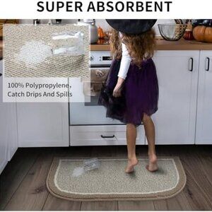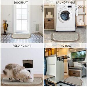 Non Slip Washable, Durable Dirt Resist Half Circle Rug Kitchen Mat 20 x 32 Beige