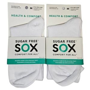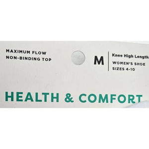Women's Health & Comfort Knee Length Non-Binding Pack Of 2 Circulatory Socks White Size Medium Shoe Size 4-10. Socks which help with circulation issue's, foot sensitivity, and give maximum comfort while not leaving a sock ring imprint.