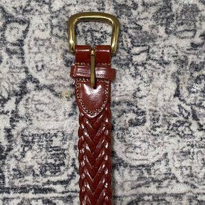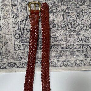 Non-Brand Brown Leather Braided Belt with Brass Buckle