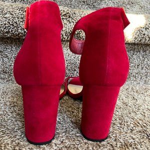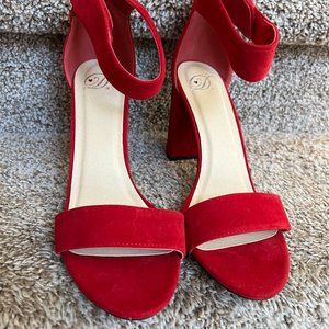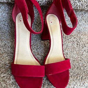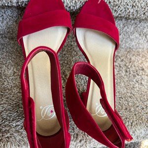 Non-Branded Women's Red Velvet Ankle Strap Heels> In very good new condition. Has not been worn.
