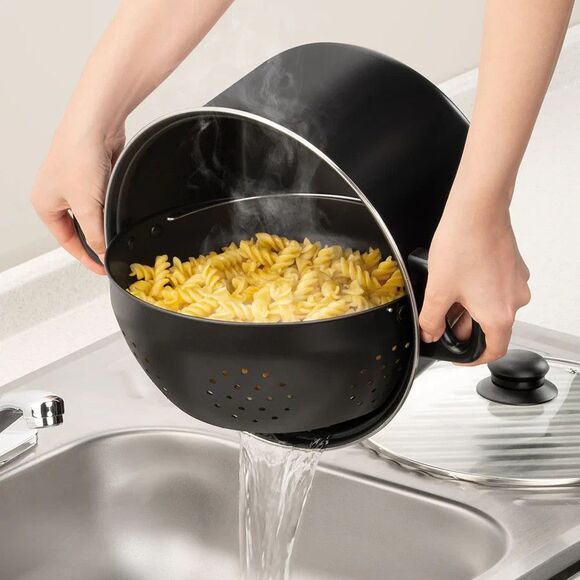 Non-Stick Easy Strain Pot Tilt Cookware 3-pc Black Clear Steam Release Lid NEW