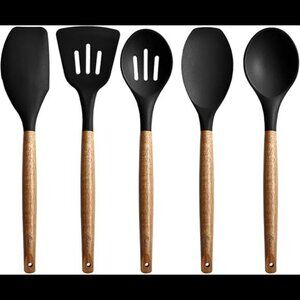Non-Stick Silicone Kitchen Utensils Set with Natural Acacia Hard Wood Handle