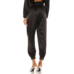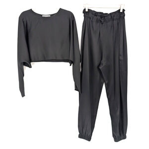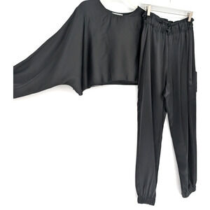 Nonchalant Label Emilia Satin Crop Top & Evory Satin Jogger Set Black Glam Small