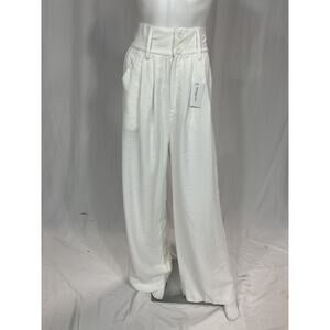 Nonchalant 'Label' White Page Pant Size M: zip fly with button closure, side slant pockets and faux back welt pockets, flowy silhouette with pleated detail.