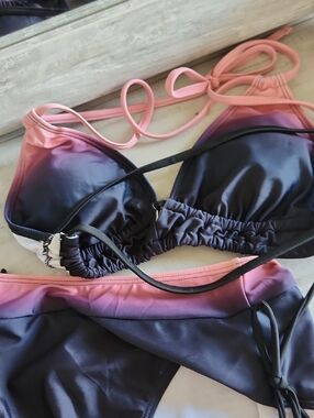 NWOT High waisted Hombre navy pink Double straps Ties on side Padded Soft Stretch No smoking