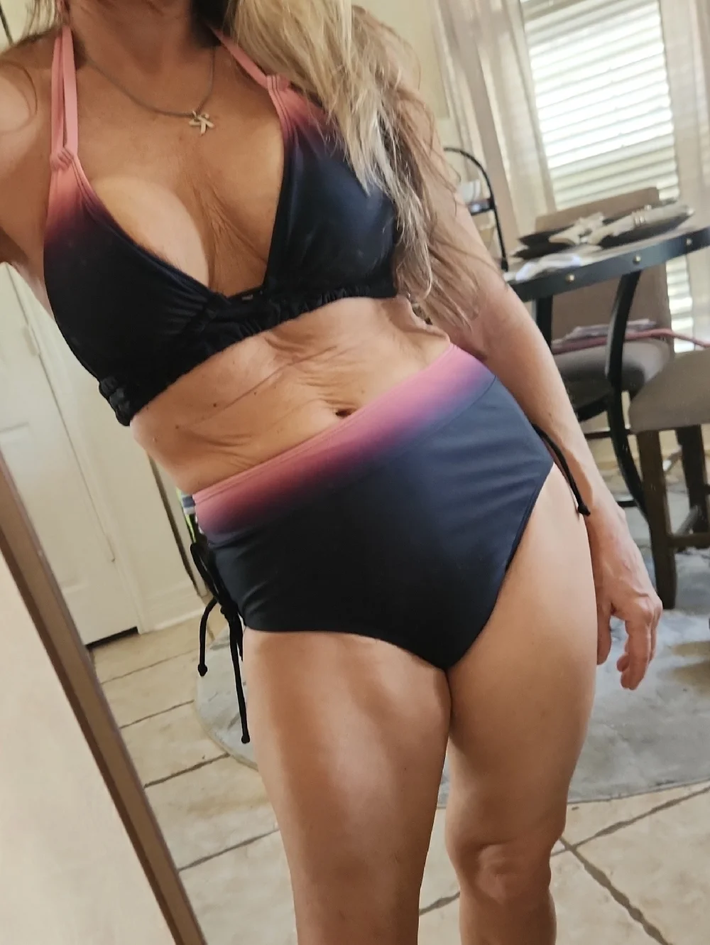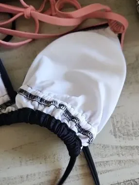 NWOT High waisted Hombre navy pink Double straps Ties on side Padded Soft Stretch No smoking