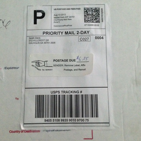 @sarahkate9713 - that is so weird! I was wondering where it was lol. Do you show the Briarstone in 76112 address? If so, then thats the right one and I have never had any problems receiving items from here before. I have no idea? Did the post office give you any reason? That's strange that they charged you. I'm actually moving this weekend so I don't want you to resend it to that address. I wonder if I can change my address and if it will let you print a new label? Want me to email posh?
