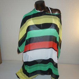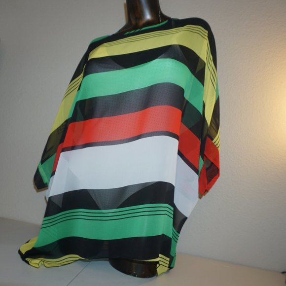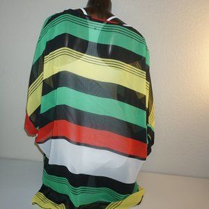 Beautiful sheer multi-color oversized cover top. (black, red, yellow, green, white.