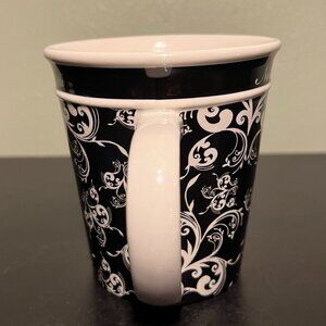 Nonni's Biscotti Black & White Art Nouveau Scroll Pattern Ceramic Coffee Mug