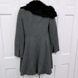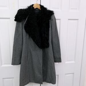With a dramatic asymmetrical shearling collar, this tailored wool coat makes a major statement while keeping you warm and cozy.