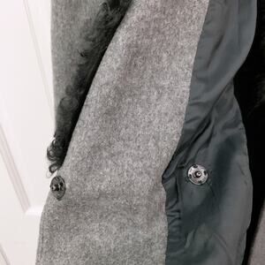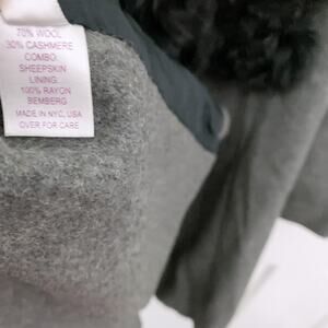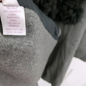 70% wool, 30% cashmere; Sheepskin collar