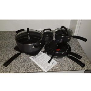 Signature Nonstick Cookware Set 12 Piece Pots and Pans, Dishwasher Safe Black