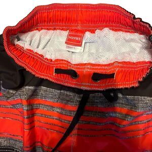 Nonwe Men’s 28 Red and Black Striped Swim Board Shorts Good used condition