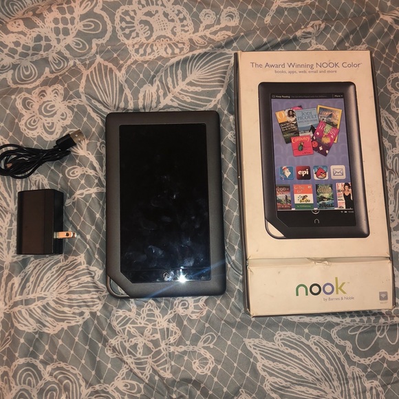 Nook color by Barnes and Noble. In perfect condition. Original charging cord was lost and replaced. More pictures coming.