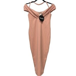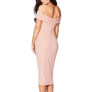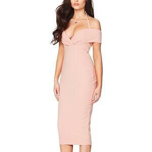 Amazing off shoulder midi dress with front tuck detail and halter straps. This style is made from our signature scuba crepe fabric, fully lined with an invisible zip at the centre back. Our gorgeous model is 5'4" and is wearing a size S. PROUDLY DESIGNED AND MADE IN AUSTRALIA