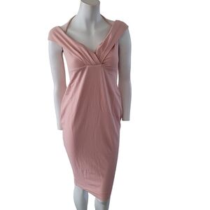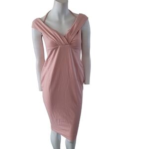 Nookie Athena Off Shoulder Halter Midi Dress Blush Pink Size Large
