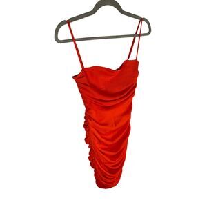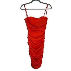 Nookie Cooper Midi Dress Bodycon Ruched Sexy Hoco Party Cocktail Tangerine Small