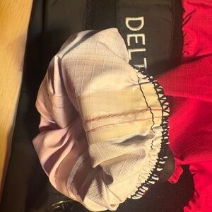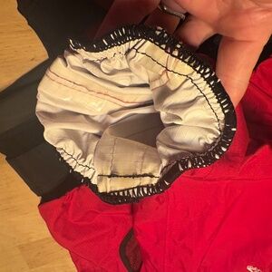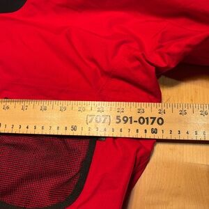 It's still a wonderful new jacket, never used, but I did try it on a couple of times. There is only a small flaw that I think came with it on the neck. It's fitted with orings on the wrists, neck, and waist to keep all your clothese completely dry underneath. Thanks making a grand entrance from a kayak to a five star in a slinky evening gown, not a drop anywhere.