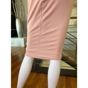 This NWT Nookie Hollywood Midi Dress in Blush Pink features features bust cut-out and crossover neck detail, Nookie's signature scuba crepe fabric, and a hidden center back zipper closure. Fully lined. There is one button missing on the neck closure, but there is an extra button attached to the care tag (see last photo).