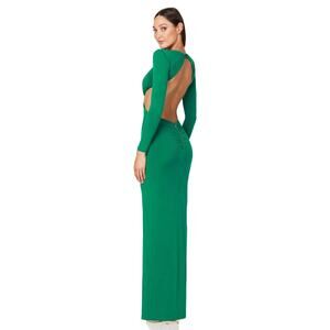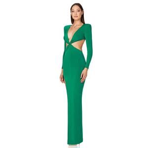 Nookie Jewel Twist Front V-Neck Cut-Out Slit Maxi Dress Emerald Women's Size XS