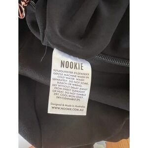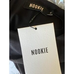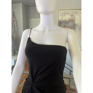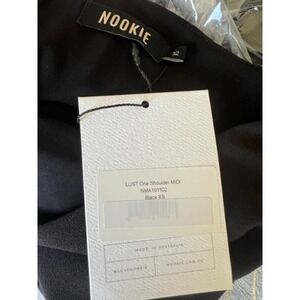 This NWT Lust One Shoulder midi dress features an elastic strap, knot detailing around the waist, Nookie's signature scuba crepe fabric, and an invisible center back zipper closure. Fully lined.