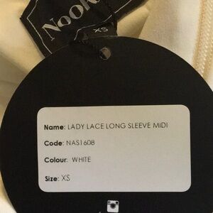 Nookie Lady Lace Long Sleeve White Midi Dress Formal Bodycon Sexy Night Out NWT