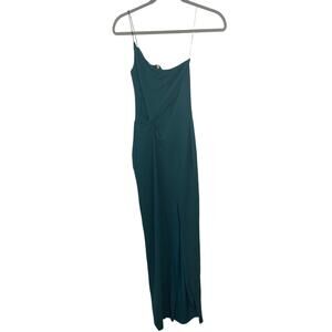 Nookie Lust One Shoulder Gown Maxi Jersey Twist Front Side Slit Teal Size XS