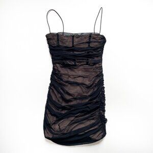 Crafted from a stunning mesh fabrication over an exposed nude lining, our gorgeous Mecca Mini will have all eyes on you. Features flattering ruching, a structured bodice & thin elastic straps.