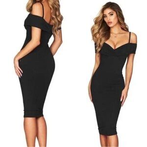 Nookie Revolve Phoenix Off Shoulder Midi Dress Black Medium NWT Color Black