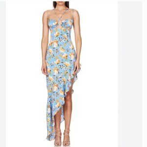 Nookie Dress Simone Cut Out Maxi Floral Print Sleeveless Blue/Yellow Size XS