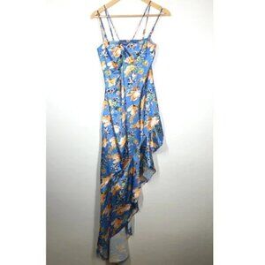 Nookie Simone Cut Out Asymmetrical Ruffle Hem Dress Blue Women's Size XS