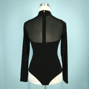 Nookie Size Large L Black Hypnotise Mesh Long Sleeve Mock Neck Back Zip Polyester Spandex Blend Knit Bodysuit Top Blouse Shirt NEW- Style NDJ1725