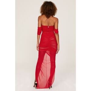 Nookie Sz XS Red Mesh Dita Strapless Sweetheart Cocktail Gown long off shoulder