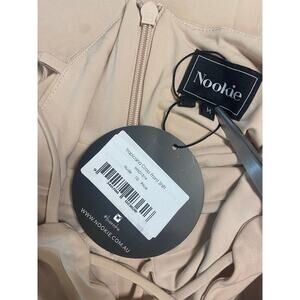 Nookie Tropicana Cross Front Shift Dress Nude Size M | Plunge Midi Bodycon