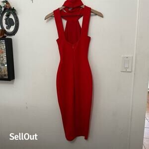 Nookie Women's Red Halter Midi Dress Size S Party Cocktail Bodycon
