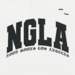 The Noon Goons NGLA Hoodie in white is a stylish and comfortable pullover hoodie designed for men in size medium. This unisex hoodie features the iconic Noon Goons brand logo, making it a unique and fashionable choice for everyday wear. Made with quality materials, this hoodie is perfect for both casual and activewear occasions, providing a versatile and trendy addition to any wardrobe.