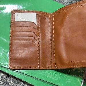 Sleek tan leather card holder. Perfect for organizing essentials. Stylish and practical. Please see photos for the leather scratches on the front and back of the case.