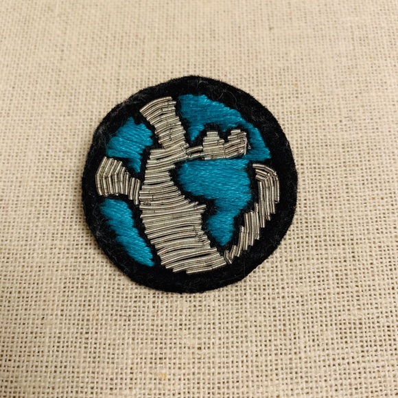 Threaded Globe Pin. Handmade and fair trade. So cute to add on to your jean jacket, backpack, handbag, anywhere! Pin has approximately 2 inch diameter.