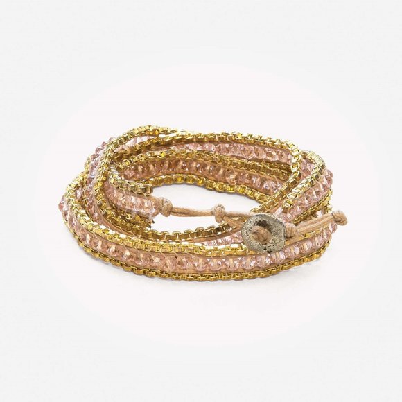 Blush and "gold" combine for a wrap bracelet that can be dressed up for a show-stopping look, or worn alone for some sweet sparkle.