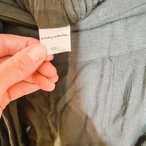 Flip into these effortlessly chic Noonday crinkle‑crepe olive trousers, also known as the “magic pants.” In size 1 (fits US 2–8), they feature a comfy elastic waist with a stylish self‑tie belt, wide cropped legs, and handy side pockets. Soft, breathable, wrinkle-resistant fabric—crafted ethically and thoughtfully by Noonday (formerly Sseko Designs). Worn only 3×; in excellent condition. Perfect for pairing with tees, blouses, or sweaters—ideal for day to night!