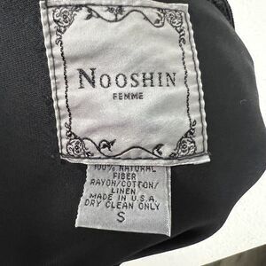 Nooshin Femme Black Button Front Embroidered Natural Fiber Lagenlook Top Size S.