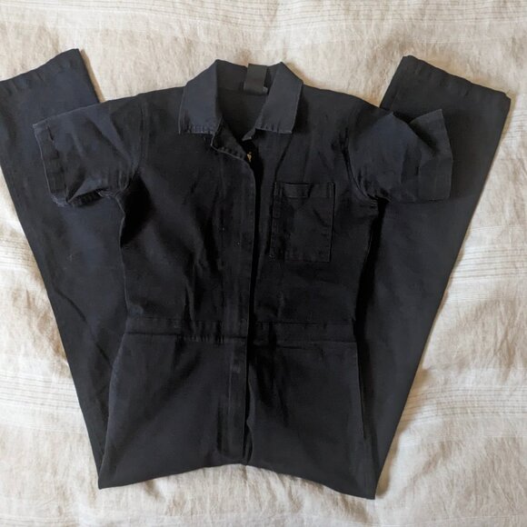 Behold your new uniform. The most comfortable fitting coveralls made in our stretch cotton twill. Featuring a relaxed full length silhouette with short sleeves, a brass zipper-front closure, one chest flap pocket and side slash pockets. Now stop looking so good and get to work!
