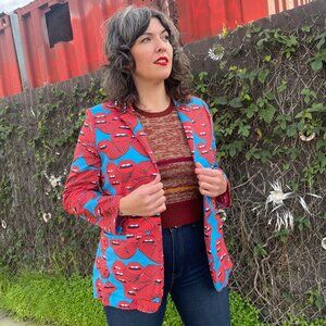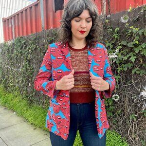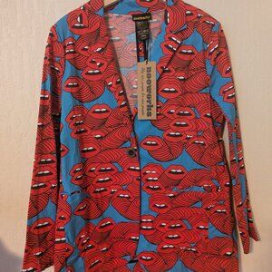 Nooworks Cotton Poplin Blazer in print Mouths. NWT. Size large.