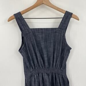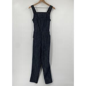 Nooworks Denim Overall Jumpsuit Wide Leg Sleeveless Chambray Dark Wash Womens XS