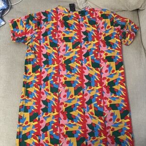 Nooworks Macarena Tee Dress Colorful Print Cotton Stretchy Mini Size XL