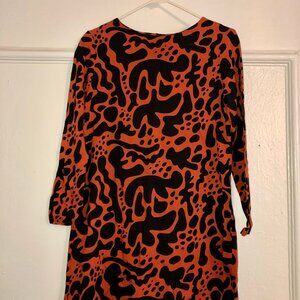 Nooworks mod shift dress, with abstract orange and black print. Super cute discontinued style!