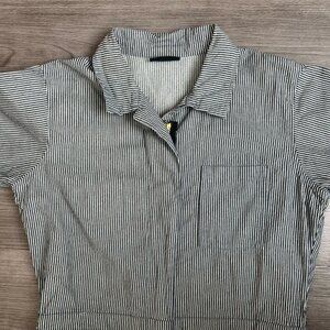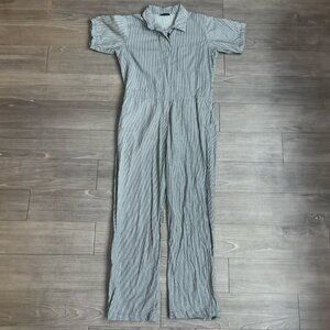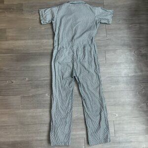 Nooworks Railroad Stripe Cotton Poplin Coveralls Short Sleeve Jumpsuit Size XL