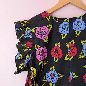 NWOT flutter sleeve top in the Roses print from a collab with Nooworks and Gentle Thrills. I got this in a mystery sale years ago, and I love the print and have the crop top version, but the ruffles aren't my thing. Retired print.
