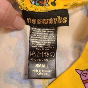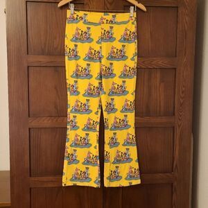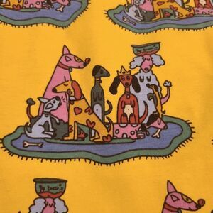 Made from soft stretch cotton jersey, these feature a high waistband and slight flare at the ankle. We just love a pant you can wear to bed OR work. Cheerful yellow background with fun Dog Party print that's no longer available from Nooworks.