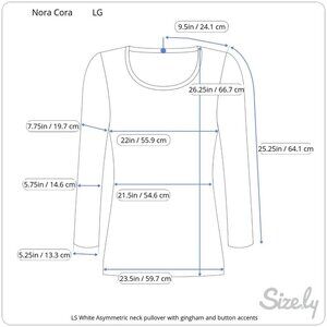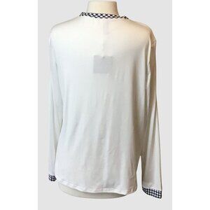 Nora Cora Long Sleeve White Pullover Asymmetric Neck Gingham & Button Accents LG